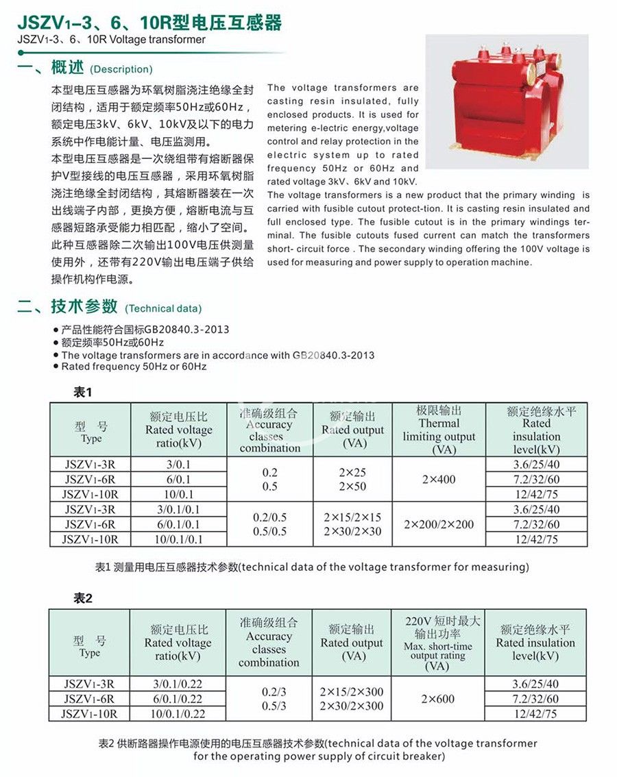 JSZV1-3、6、10R型電壓互感器